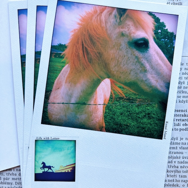 12年前の復刻版、馬のフォトカードです 2026年の年賀状に合わせて、新たにコラージュしたデザインで作りました! Kauai island USA, Franceで撮影した馬の写真でコラージュ。 (年賀の文字は入れていませんので、午年の年賀状にも、ひと味ちがったメッセージカードとしてお使い頂いても) 紙質は、 最高級上質紙180㎏ しっかりとした弾力があり、 筆記しやすい紙にオフセット印刷をしています。 ---- ▶︎3枚のセットとなります。 ▶︎10枚以上のセットはかわいいセットにしてお安くお買い求めいただけます(期間限定) FAQ)) ▶︎こちらお写真にある2パターンが裏表ということでしょうか? →そうです☺︎ ▶︎こちらの年賀状は差出人印刷は可能でしょうか? →上質紙にオフセット印刷を施していますので、家庭用プリンタでの印刷は可能です。 フォトカードを年賀状にもメッセージカードにも、 楽しんでお使いいただける方にお使いいただけると嬉しいです☺︎