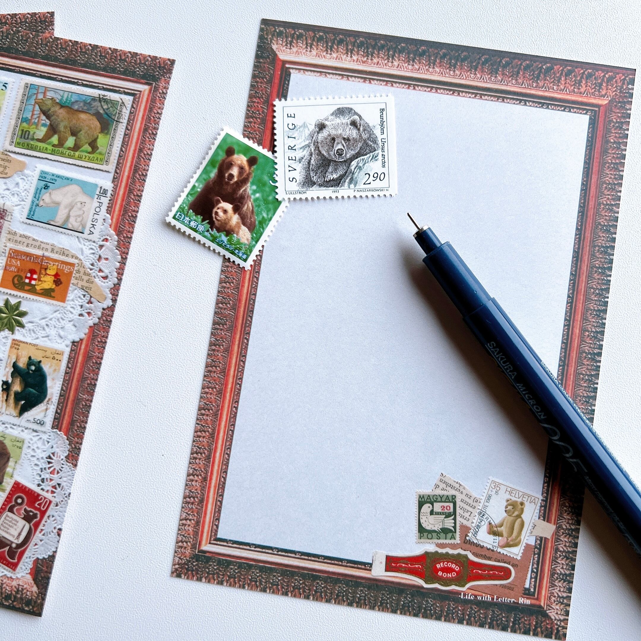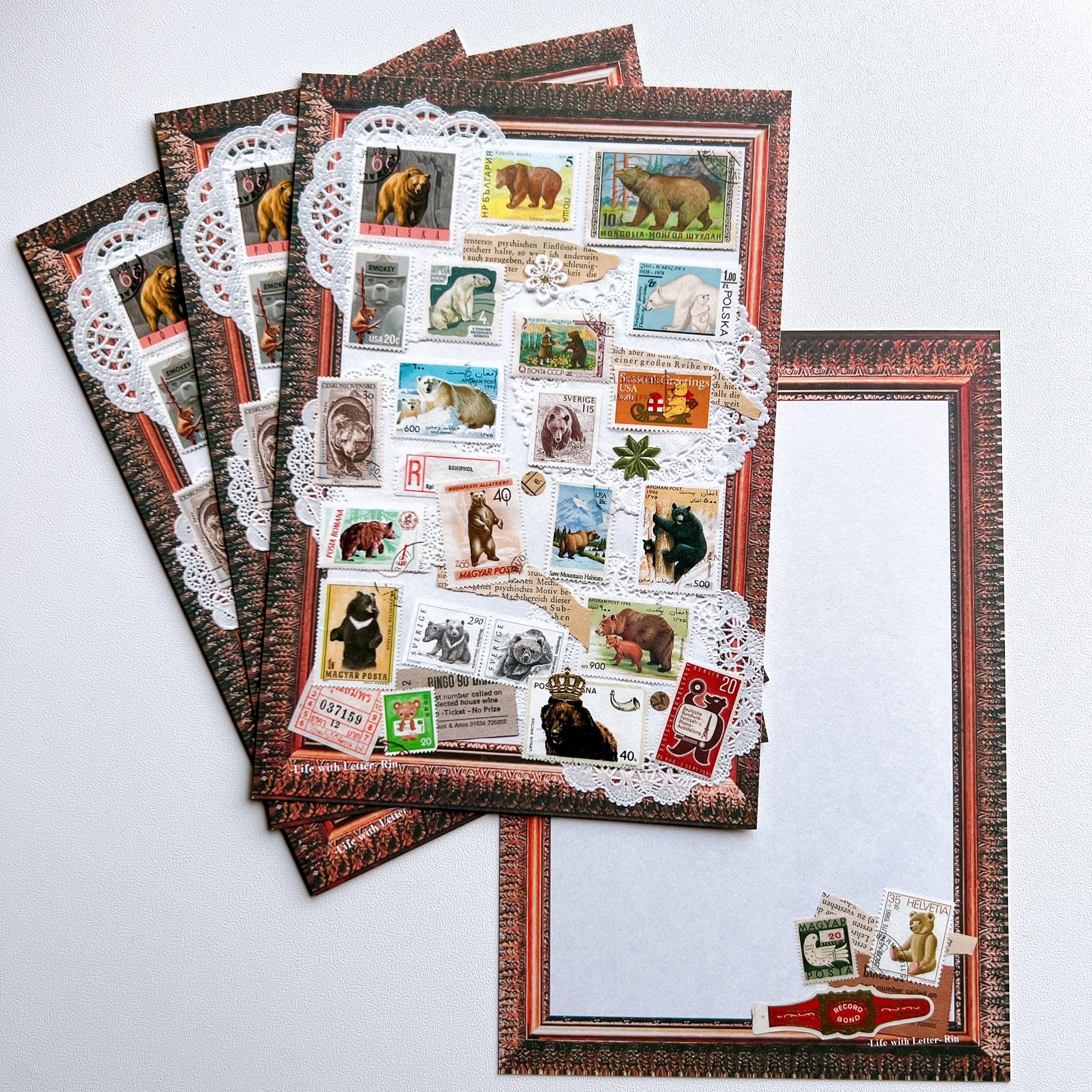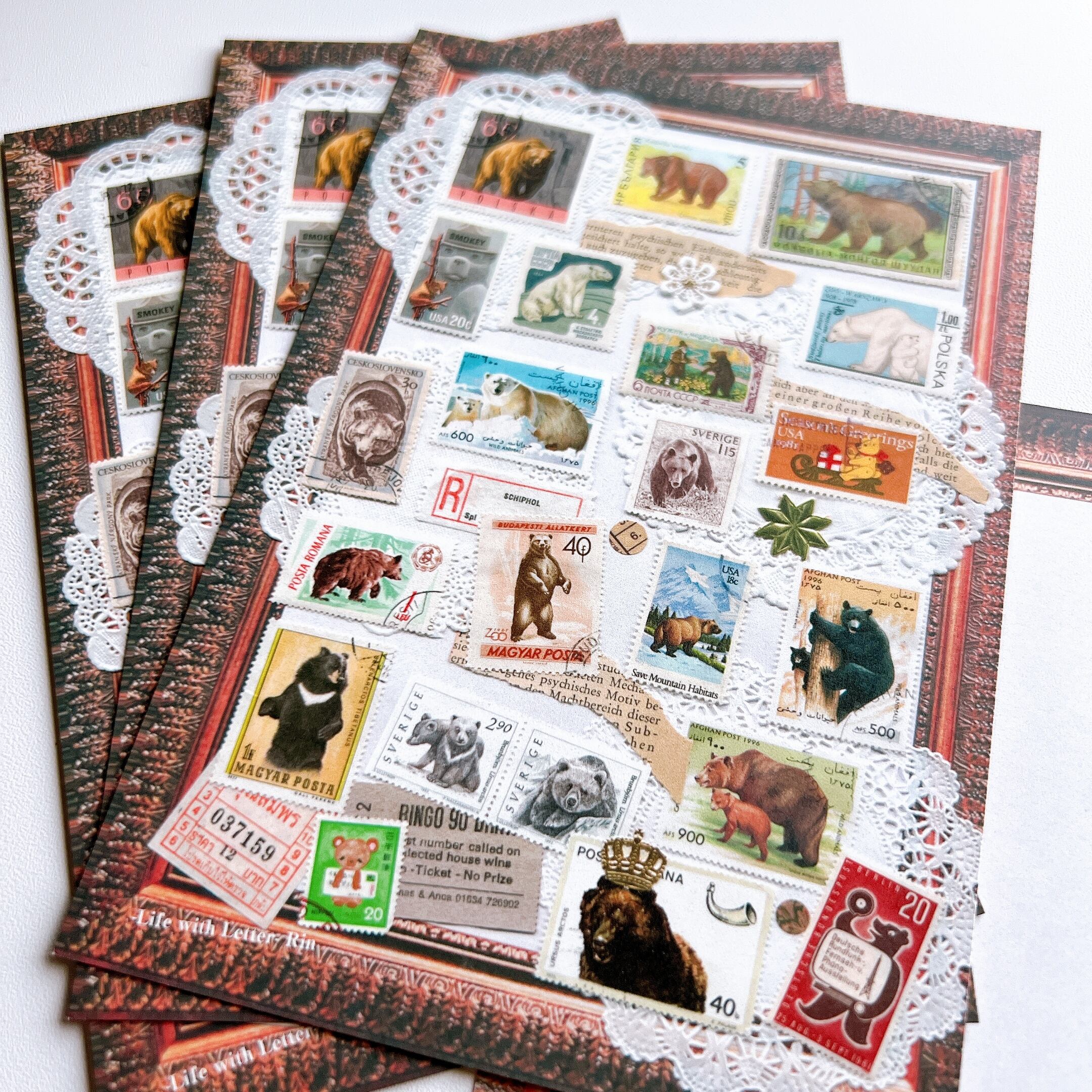 古い切手のコラージュハガキに「クマ」が仲間入りしました!